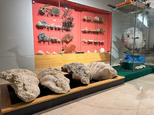 Khu trưng bày Sinh vật biển: Đây là không gian trưng bày sinh vật biển gồm cá mặt trăng, sò tai tượng, ốc nghêu biển…