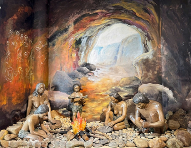 Trong không gian này có Mô hình tái hiện cảnh sinh hoạt của người cổ trong hang động núi lửa Krông Nô, Đắk Nông. Các nhà khoa học của Bảo tàng Thiên nhiên Việt Nam và Viện Khảo cổ học đã tìm thấy bằng chứng về dấu tích cư trú, công cụ đá, di tích xưởng, di tích mộ táng ở hang C6.1, đặc biệt là việc phát hiện "di cốt người tiền sử trong hang động núi lửa Krông Nô, Đăk Nông" được xác định có niên đại khoảng 5.000 - 7.000 năm cách ngày nay, trong hệ thống hang động núi lửa dài nhất Đông Nam Á này. Mô hình trưng bày không chỉ giúp người xem hình dung được các hoạt động sống của tổ tiên xa xưa, mà còn nhấn mạnh giá trị khoa học, văn hóa và di sản độc đáo của hệ thống hang động núi lửa Krông Nô - di sản địa chất cấp quốc gia, góp phần quyết định cho việc UNESCO công nhận danh hiệu CVĐC Toàn cầu cho CVĐC Đắk Nông vào ngày 07/7/2020.