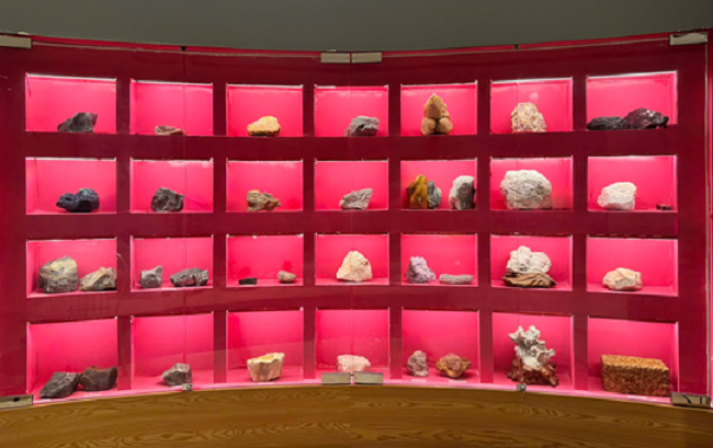 Khu trưng bày Khoáng sản: Tại đây cho phép khám phá sự phong phú của khoáng sản trong lòng đất nước ta gồm có các nhóm quặng kim loại, nhóm khoáng sản phi kim, nhóm đá bán quý và khoáng vật, nhóm nhiên liệu khoáng và đá xây dựng