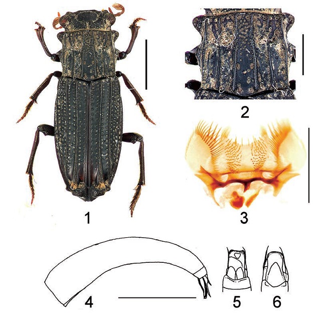 Hình. 1-3. 1, Loài Rhyparus vietnamicus Ochi, Kusui, Pham, 2018, thước đo 10 mm. 1, nhìn từ mặt lưng. 2, pronotum, nhìn từ mặt lưng; 3, epipharynx.