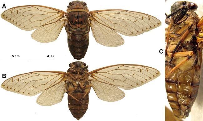 Kích thước con đực loài mới: chiều dài cơ thể 72,5mm, chiều dài cánh trước 83,5mm; chiều rộng cánh trước 13,4-15,0mm; chiều rộng của đầu (gồm cả mắt kép) 20,2mm; chiều dài đầu 9,1mm; mảnh lưng ngực trước (pronotum) rộng 24,5mm.