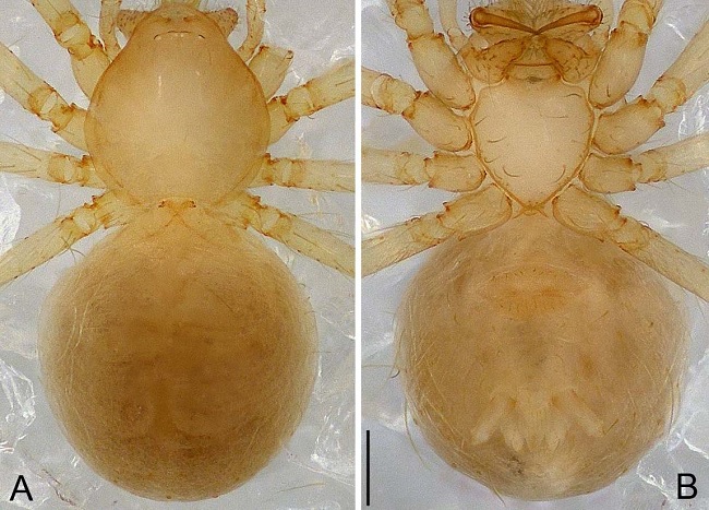 Hình 5. Loài Pinelema zhenzhuang sp.nov. (A: mặt lưng, B: mặt bụng)