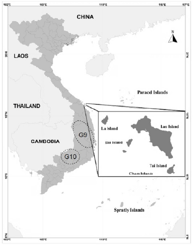 Bản đồ định hướng đảo Hòn Lao – Khu vực ghi nhận loài Sóc đỏ - Callosciurus finlaysonii với hình thái biến thiên