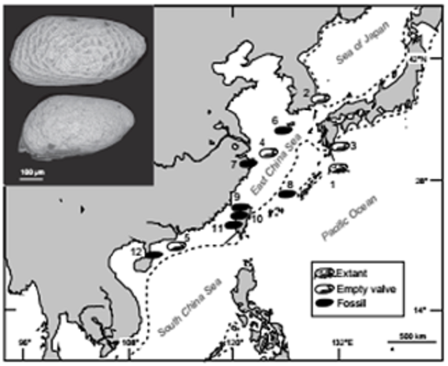 Trong báo cáo này, chúng tôi mô tả phát hiện đầu tiên về hai loài Ostracod còn sống ở quần đảo Nhật Bản là: Sinocytheropteron ignobile và Sinocytheridea impressa. Chúng điển hình cho các yếu tố động vật lục địa từ Trung Quốc, trong quá trình nghiên cứu của chúng tôi về sự phân bố của các tổ hợp ostracod ở vùng biển Ariake và Yatsushiro ở Tây nam Nhật Bản. Dữ liệu (Cổ) sinh địa chất - địa lý từ các nghiên cứu gần đây và dấu tích các hóa thạch chỉ thị cho thấy S. ignobile và S. impressa di cư qua các cây cầu trên đất liền khi mực nước biển hạ trong quá khứ. Chúng tôi cũng phát hiện ra Xestoleberis ryukyuensis, loài từng được tìm thấy ở Quần đảo Ryukyu. Sự xuất hiện của chúng trong khu vực nghiên cứu đã cho thấy sự phân bố cực bắc hiện tại của Xestoleberis ryukyuensis và gợi ý rằng nó di cư từ quần đảo Ryukyu đến khu vực nghiên cứu bằng cách sử dụng dòng ấm Tsushima, một nhánh của dòng Kuroshio chính. Bằng chứng này cho thấy rằng sự di cư của các loài ostracods biển nông giữa các lục địa và các đảo lân cận của chúng không chỉ ảnh hưởng bởi dòng hải lưu toàn cầu mà còn bị ảnh hưởng bởi sự hạ mực nước biển và đặc điểm (cổ) sinh địa lý - địa chất của các vùng biển liền kề. Do đó, những con Ostracods sống trong các bờ biển lục địa cung cấp bằng chứng mạnh mẽ cho việc tái cấu trúc kết nối giữa lục địa và các đảo lân cận.