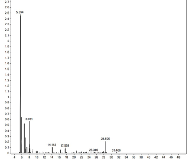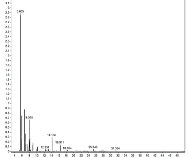 Hình 2. Sắc ký đồ tinh dầu thân rễ loài Meistera vespertilio thu tại Nghệ An