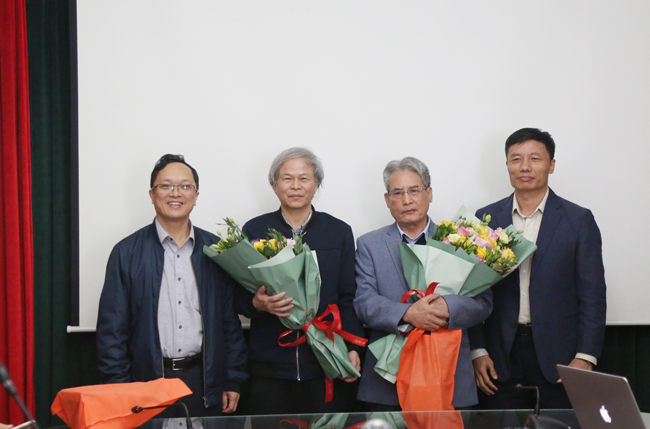 Lãnh đạo Bảo tàng, Công đoàn và các đơn vị trực thuộc đã chúc những điều tốt đẹp nhất và tặng những bó hoa tươi thắm đến PGS. TS. Lưu Đàm Cư và PGS.TS. Trần Văn Ý.